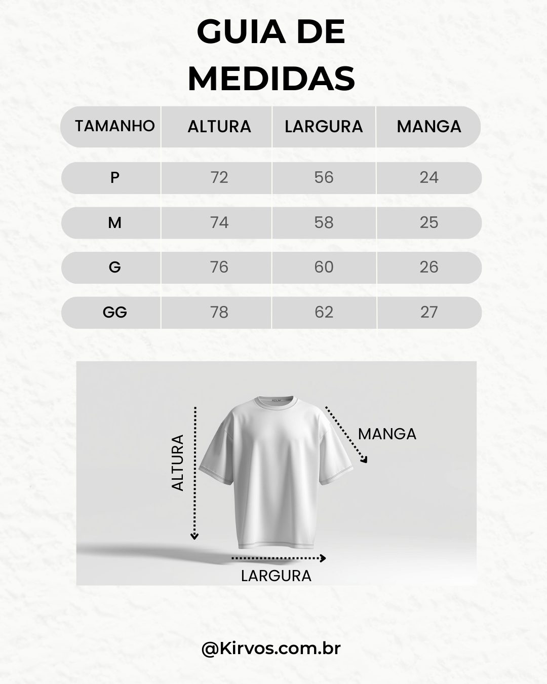 Nossas peças Kirvos passam por um rigoroso processo de pré-encolhimento durante a fabricação, garantindo zero encolhimento após a compra. Esse tratamento avançado assegura que cada camiseta mantenha sua modelagem original, mesmo após diversas lavagens, preservando caimento, conforto e elegância.
